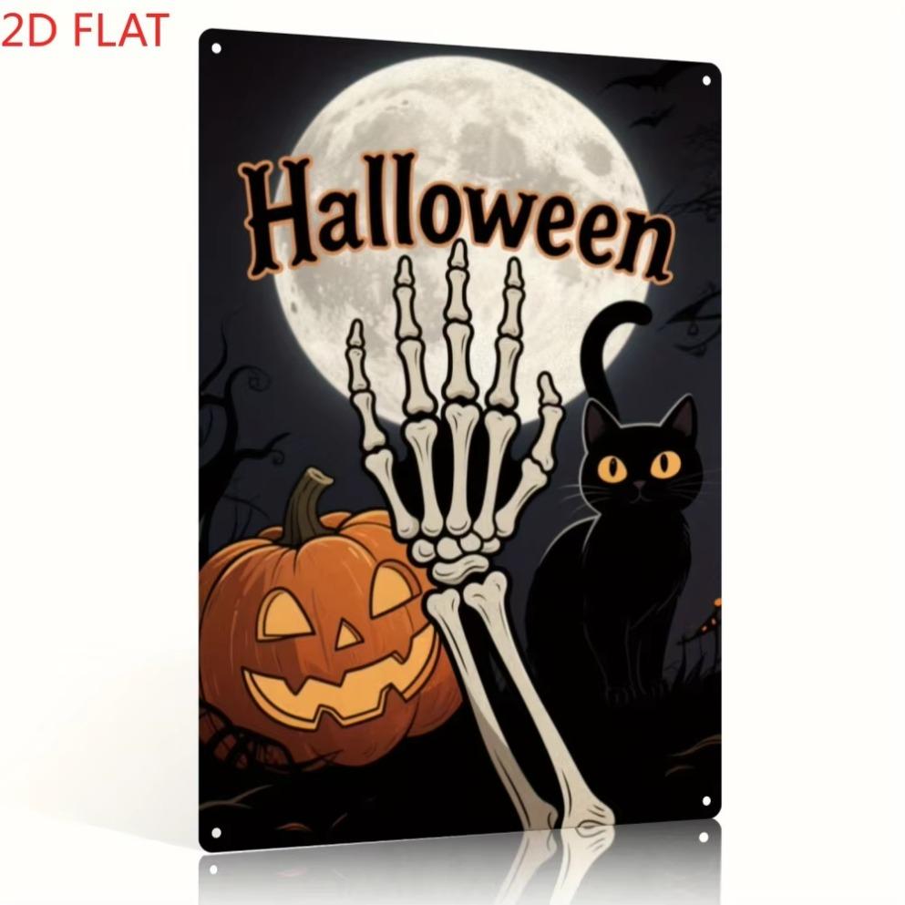 1pc 2D Flat Vintage Halloween Iron Sign - Skeleton/Black Cat/Pumpkin Decor, Ideal for Living Room/Garden/Indoor-Outdoor