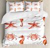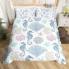 Beach Starfish Duvet Cover Set Blue Ocean Coastal Bedding Set Cute Ocean Creatures Seashells Starfish Print Comforter Cover Sets