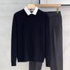 Elevate your fall wardrobe with this stylish men's designer sweater, featuring a Korean-inspired fake two-piece design. This sophisticated piece combines the elegance of a stand collar with a modern round neckline, delivering a refined yet contemporary look. The slim fit and long sleeves offer a flattering silhouette, perfect for layering in the crisp autumn weather. Crafted with a standard thickness, it ensures comfort without compromising on warmth. The inner knitwear base layer, made from a blend of chemical fiber and polyester, adds an extra touch of luxury to this versatile sweater, making it an ideal choice for any stylish occasion.