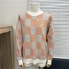 LV 25 Unisex Plaid Checkerboard Jacquard Sweater - Color Block, Round Neck, OS Fit