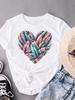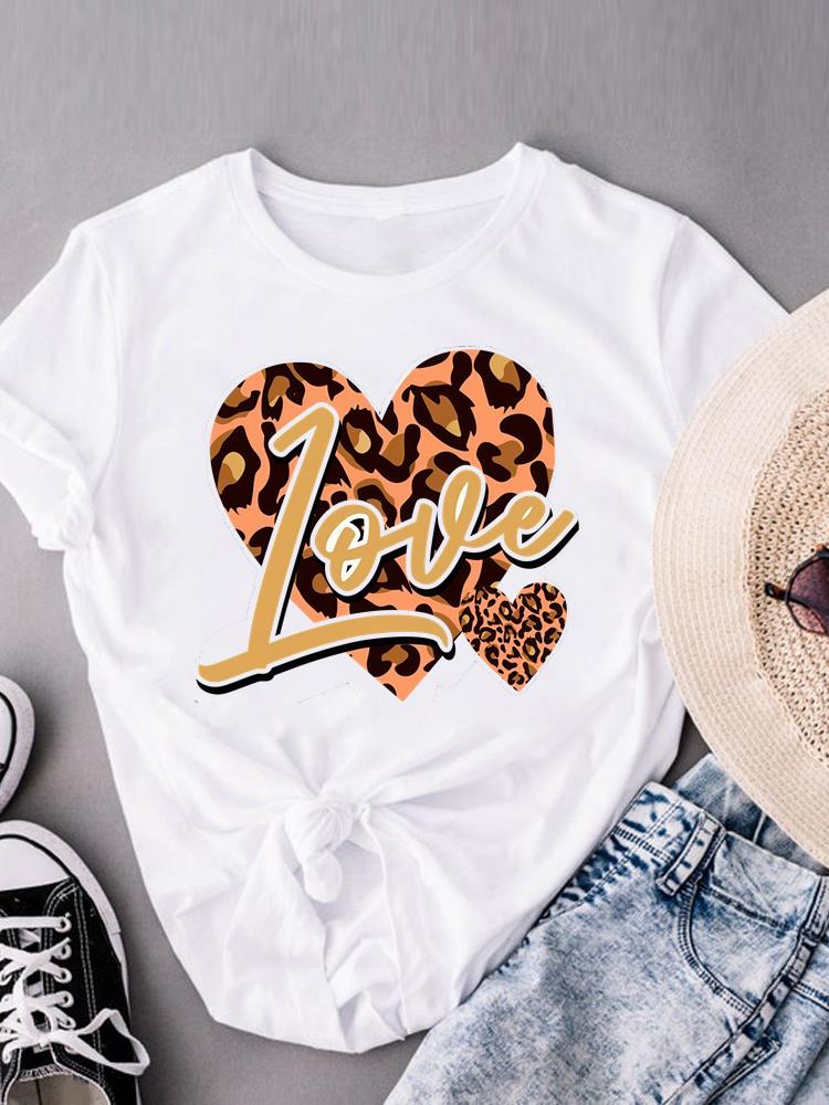 (Asian Size) Leopard Love Heart Women's Top Print O-neck Short Sleeve T-shirts Fashion Female Casual T Clothing Graphic Tee