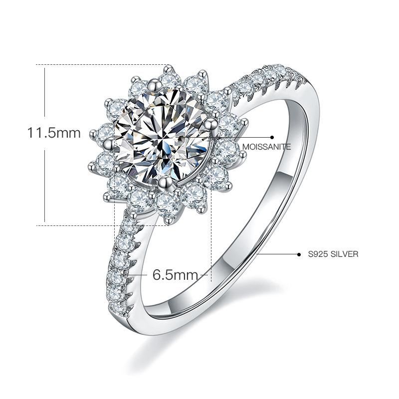 Sunflower Natural Wind Belt Moissanite Ring S925 Sterling Silver Inlaid 1 Carat Mozambican Ring