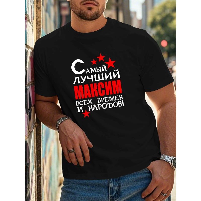 European Sizes Men'S T-Shirt In Black Featuring , Designed for Casual Wear, Outdoor Activities - A Cyrillic Script Design Tailored