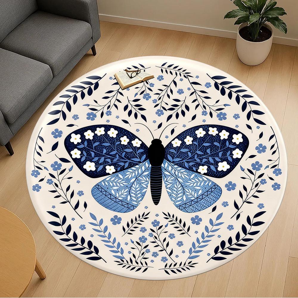 1pc Butterfly Floral Round Chair Mat Office Area Rug - Non-Slip, Floor Mat for Office, Bedroom, Ideal Home Decor Gift P0105085