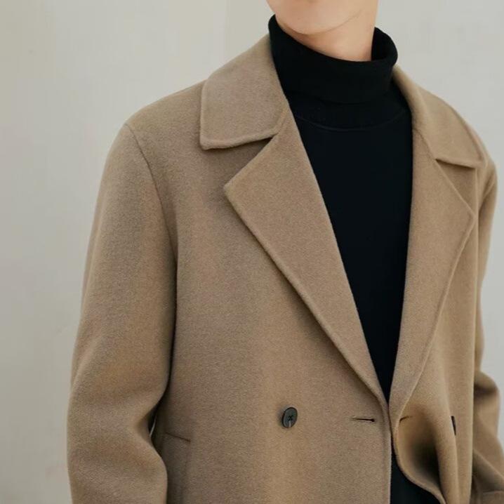 Men's Wool Trench Coat, Double-Sided, Mid-Length, High-End, New for Autumn/Winter.