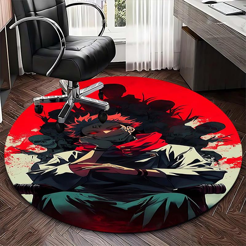 1pc Demon Slayer Tanjiro Kamado Round Carpet - Anime Design Office Chair Mat