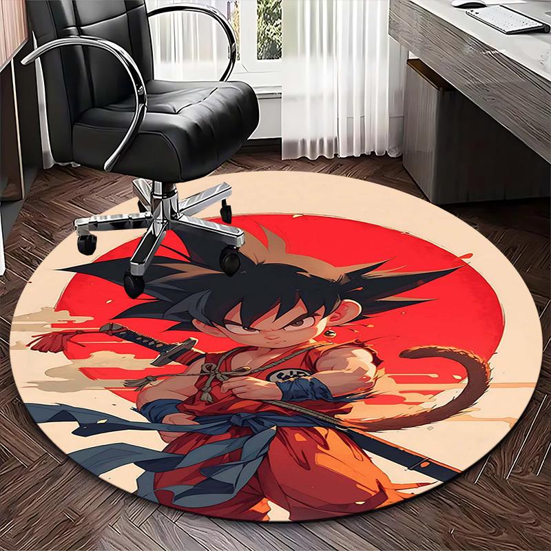 1pc Dragon Ball Z Goku Anime Cartoon Design Round Carpet Office Chair Mat Non-Slip Rug for Home Decor