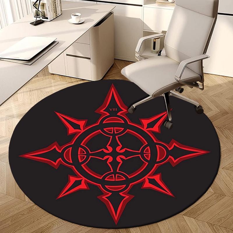 1pc Red Compass Symbol Round Carpet, Made of Polyester,Office Chairs, Living Rooms, Or Bedrooms, a Cool Rug for The Living Room.ydt26059