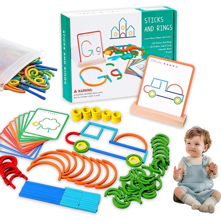 Montessori Smart Sticks, 2025 New Quick Thinking Puzzle Blocks for Toddlers, Wooden Sticks and Rings Puzzle Game, Boost Creativity, Imagination & Focus for Preschool Kids