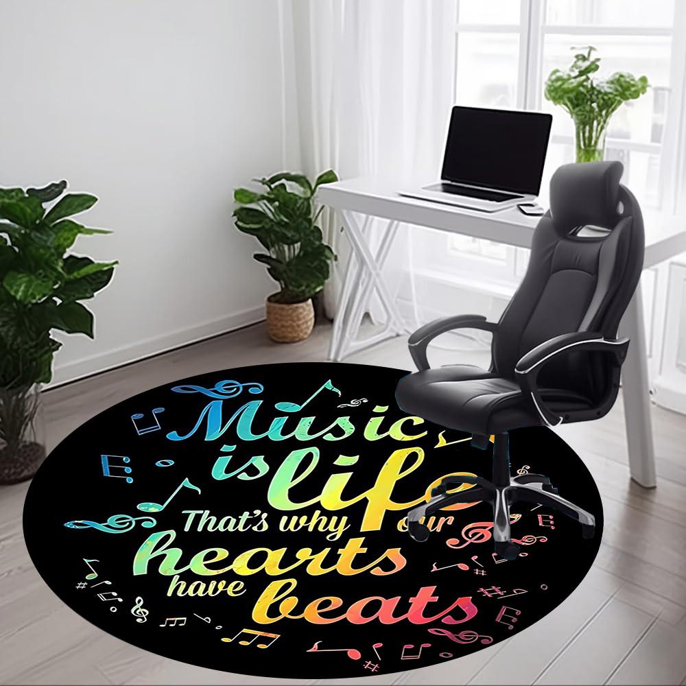 1pc Music Life Chair Carpet for Office, Round Polyester Mat, Indoor Decor for Office, Easycare Fabric, Washable Non-slip Area Carpet
