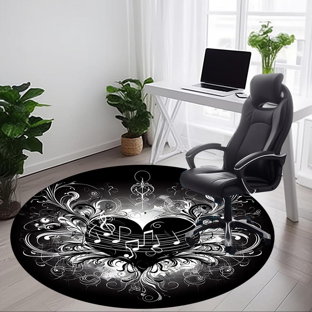 1pc Heart Music Notes Chair Carpet for Office, Round Polyester Mat, Indoor Decor for Office, Easycare Fabric, Washable Non-slip Area Carpet