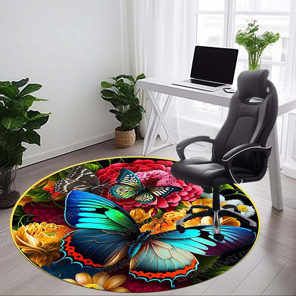 1pc Butterfly Garden Decor Chair Carpet for Office, Round Polyester Mat, Indoor Decor for Office, Easycare Fabric, Washable Non-slip Area Carpet