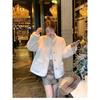 Women's Autumn and Winter Solid Color Buttoned Long-sleeved Cardigan Flocked Fashion Casual Loose Jacket Top