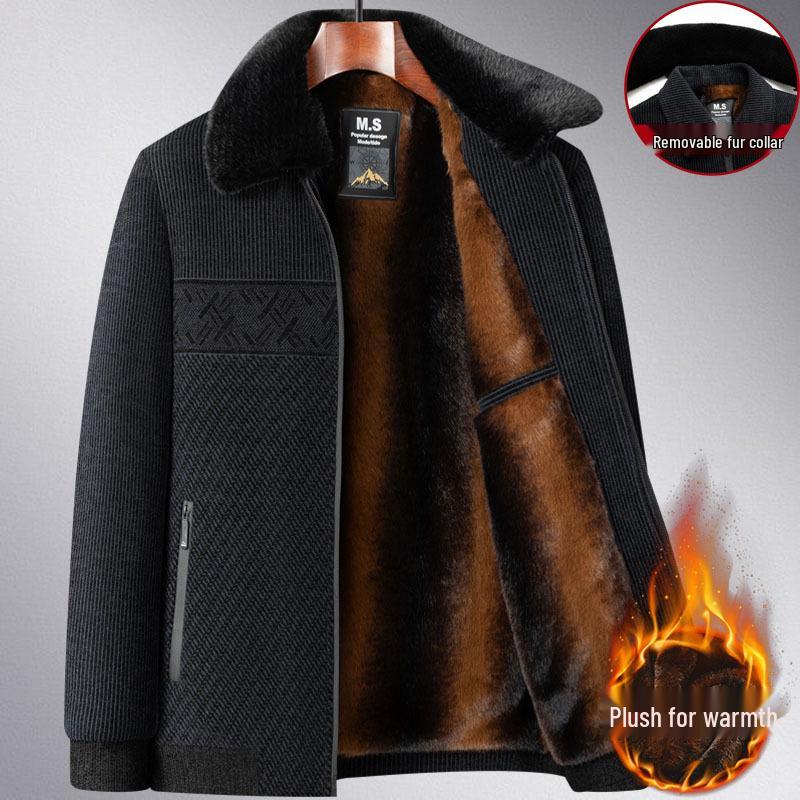 Wrap up in style and comfort with this men's wool blend winter jacket, perfect for the cold season. Designed with a warm, thickened construction, the coat features a plush polyester fiber lining that offers exceptional softness and insulation. Ideal for dads or grandpas, this jacket provides both functionality and modern sophistication. Its durable polyester material ensures long-lasting wear, while the classic design and tailored fit make it a versatile addition to any winter wardrobe. Stay cozy and chic, no matter the weather.