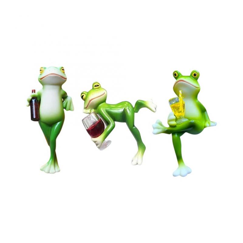 3 Stück Pflanzenfiguren, Dekoration für Töpfe, Lustiger Getränke-Miniaturfrosch, Froschstatue, Gartendekoration, Rasenornament Beschreibung