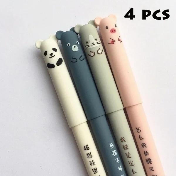 4 Pcs Animal Cat Bear Panda Erasable Pen Rollerball School Office Student 0.38 Mm Writing Supplies Japanese Stationery