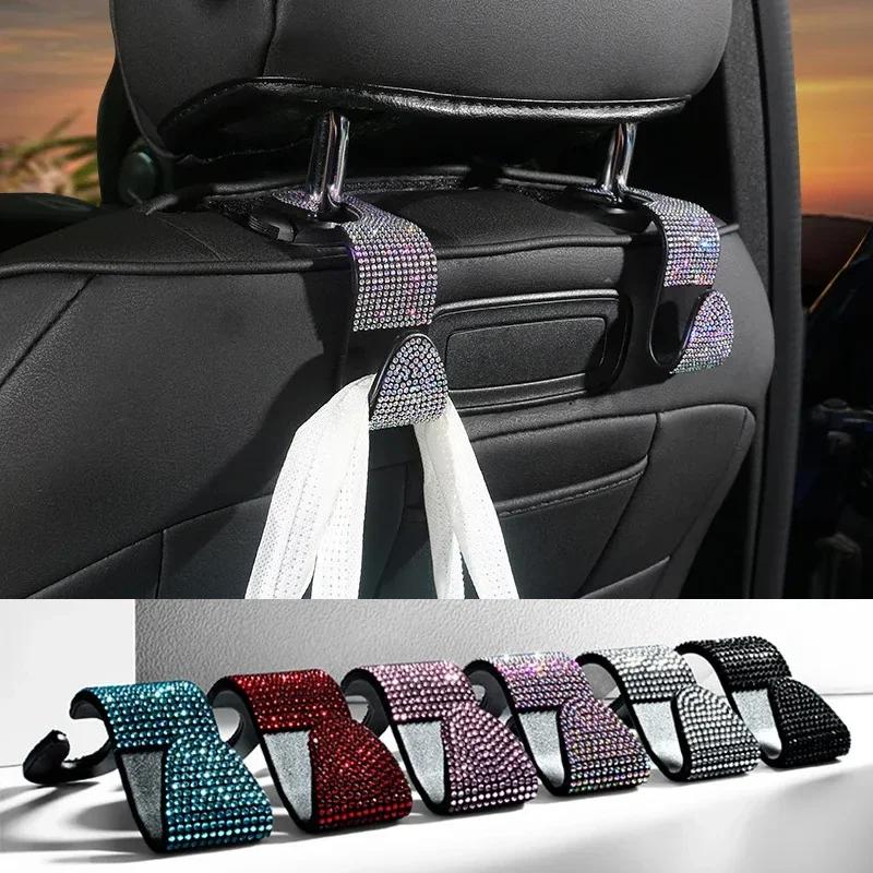 Car Seat Back Hook Diamond Bling Rhinestones Hanger Auto Back Universal Headrest Mount Storage Holder Car Interior Accessories