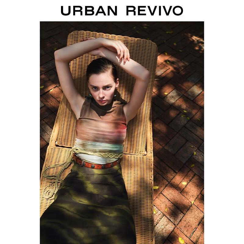 UR 2025 Fall Women's Retro Abstract Print Mesh Pleated Vest