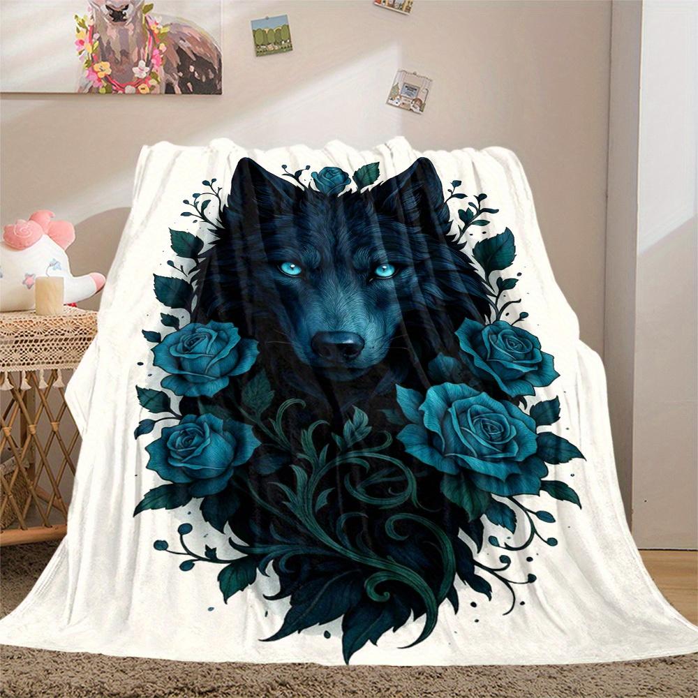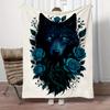 1Pc Wolf Roses Print Flannel Blanket, High Quality Digital Printing, Comfortable for All Seasons, Home DecorGifts821007