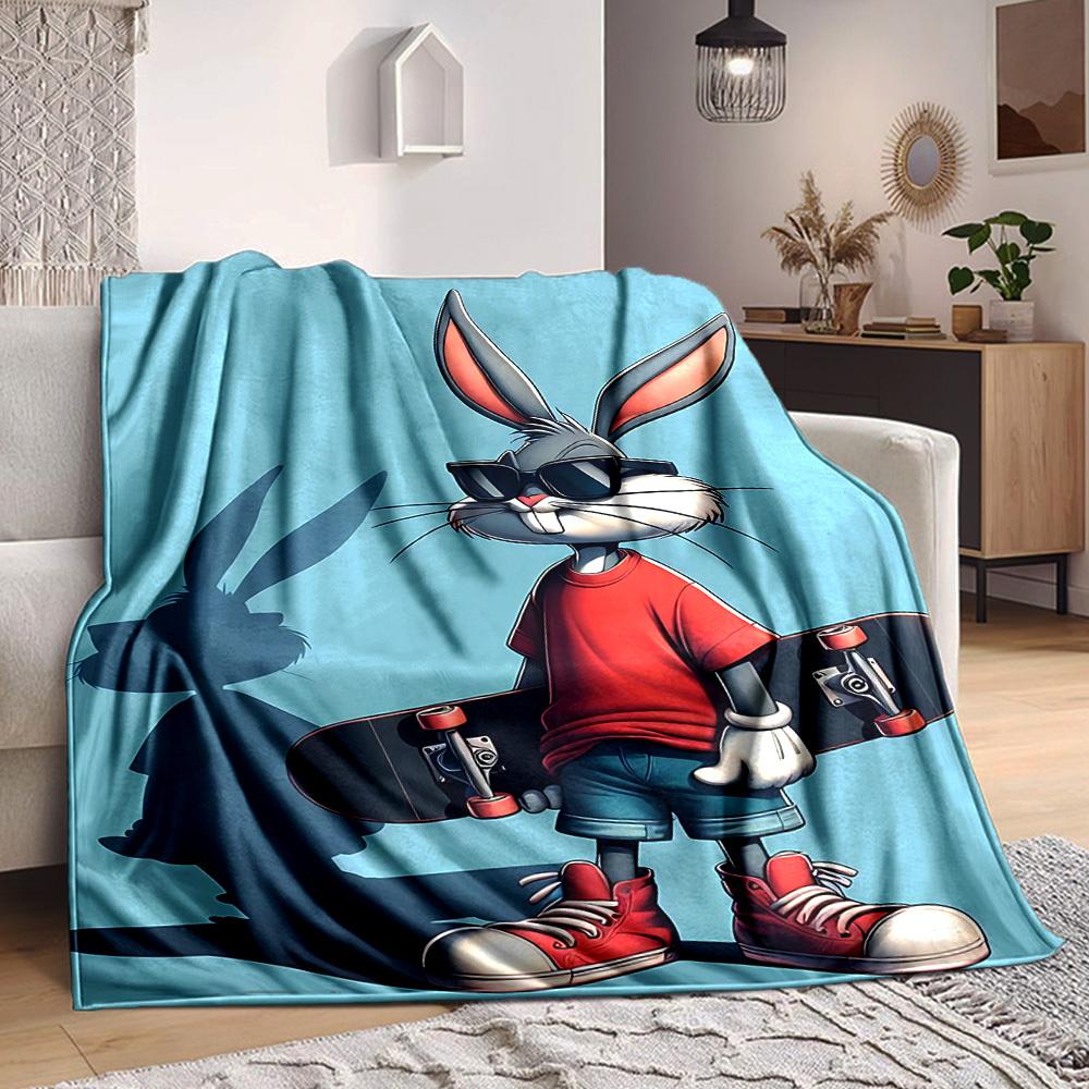1pc Bugs Bunny Flannel Throw Blanket Lightweight Soft Warm All Season Blanket for Sofa, Bed, Travel,L1028017