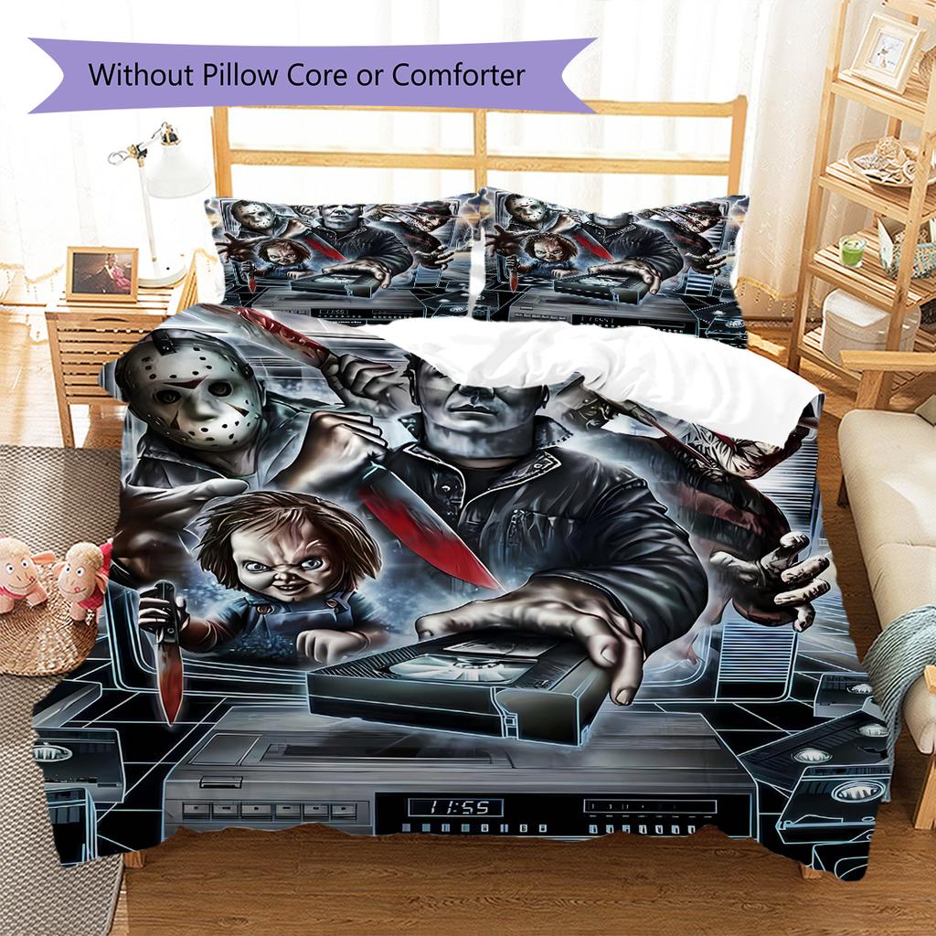 Horror Killer Pattern Bedding Quilt Set Quilt Cover Pillowcase Home Decoration Gift (1 * Duvet Cover + 2 * Pillowcase, Without Core)