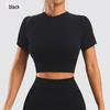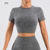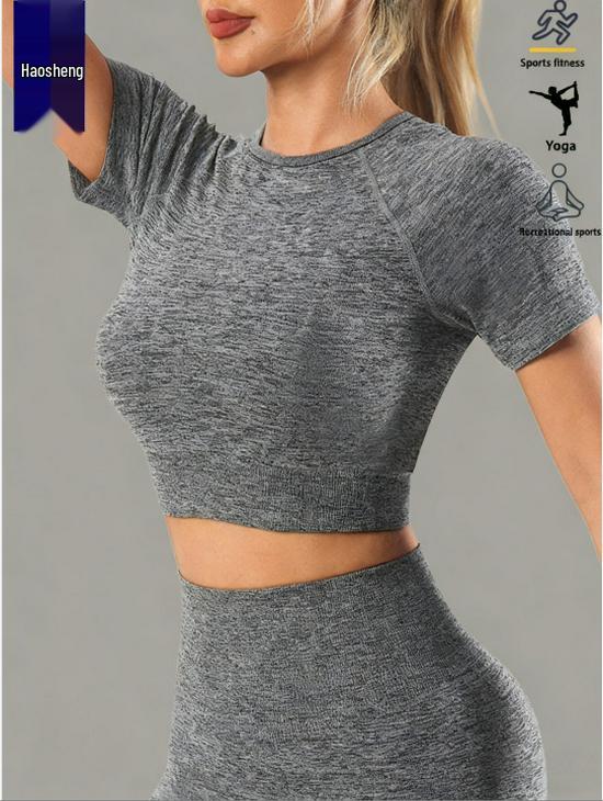 Seamless Knit Slimming Bodycon Yoga Top - Short Sleeve, Small Round Neck, Solid Color Fitness Wear