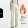 Women's High-Waist Fleece-Lined Yoga Pants: Loose Straight-Leg, Slimming, Ideal for Running, Training, and Autumn/Winter Warmth.