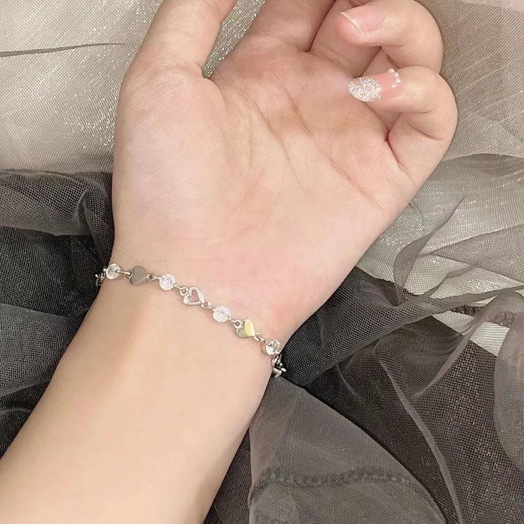 Sweet Cool Heart Rhinestone Bracelet for Girls, Ins Design Hand Jewelry, Gift for Best Friend or Girlfriend, Japanese and Korean Fresh Style Bracelet