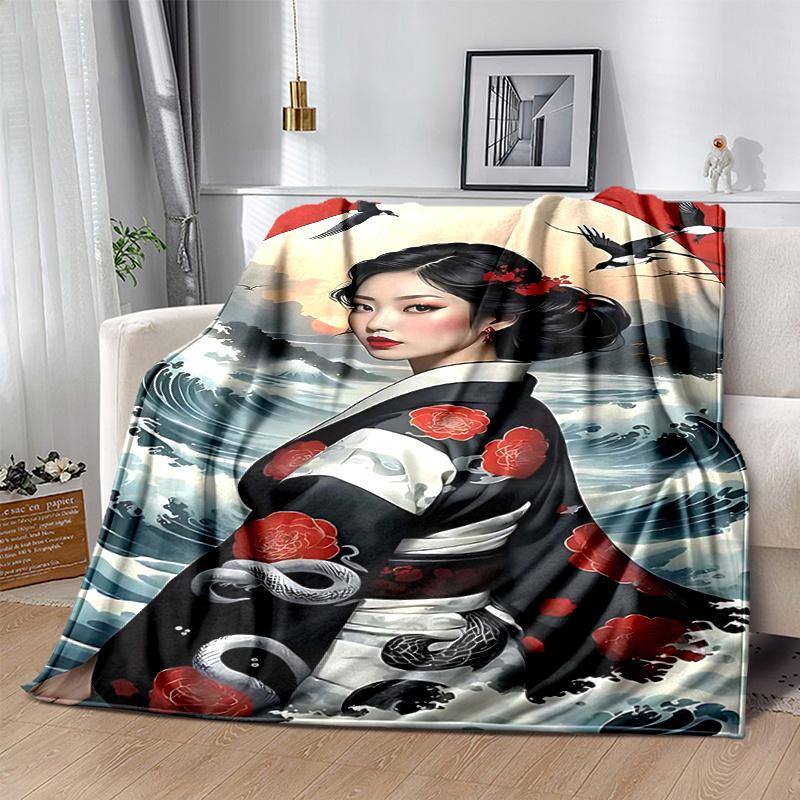 1pc Japanese Geisha Design Throw Blanket Home Decor, Sofa Cover, Outdoor Blanket .W052