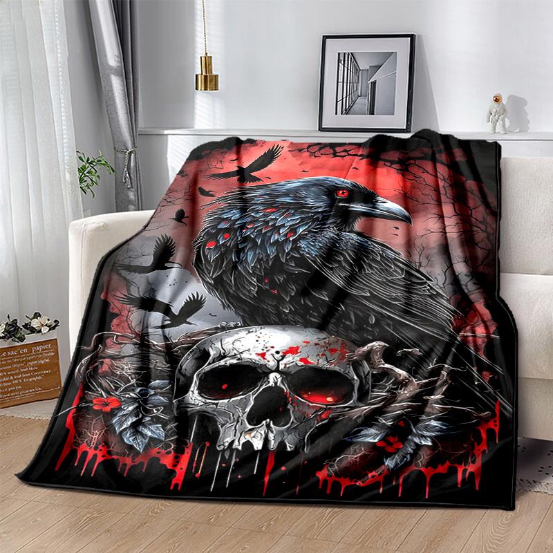 1pc Crow and Skull Blanket Soft Throw for Room Decor, Perfect Gift for and , Living Room .K027