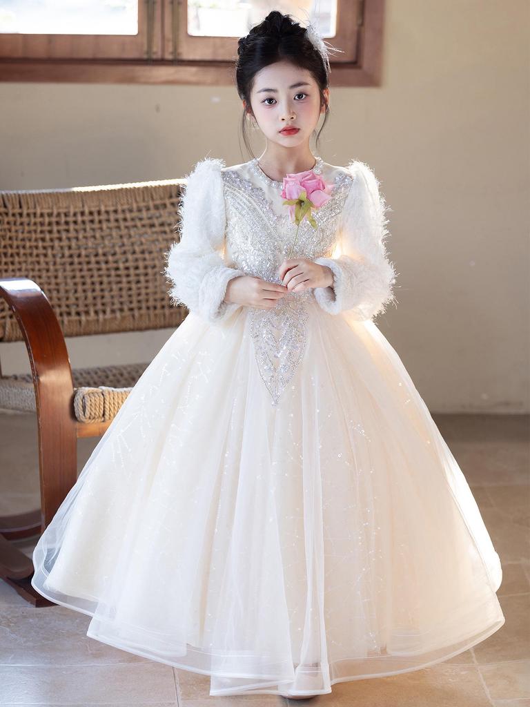 Elevate special occasions with this luxurious formal autumn/winter princess dress for girls. Designed as a high-end flower girl dress, it's perfect for birthdays, weddings, and other memorable events. Crafted from premium polyester, this dress combines comfort with elegance, ensuring your little one feels like royalty. The exquisite attention to detail and sophisticated design make it an ideal choice for creating unforgettable moments.