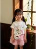 2025 Korean Summer Cute Cat Print Short Sleeve Plaid Skirt Set