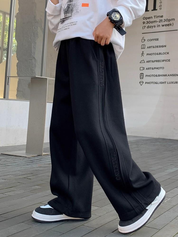 Boys' Fleece-Lined Wide-Leg Pants for Autumn/Winter - 2025 New Style Sportswear for Older Kids