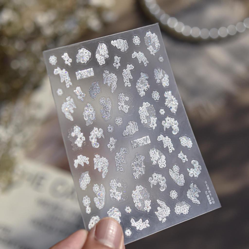Tomoni Retro Lace Glitter Nail Art Stickers - DIY Exquisite Style Mixed Pack