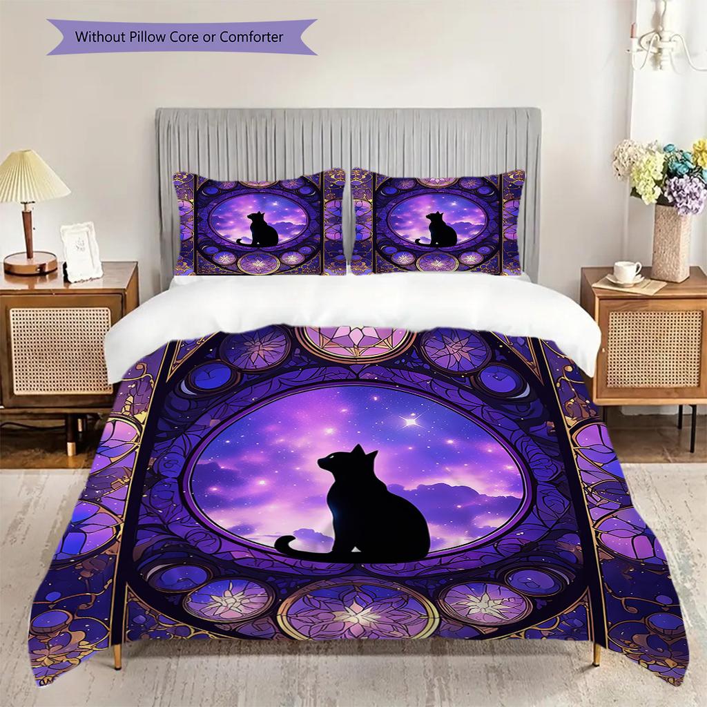 Black Cat Pattern Bedding Quilt Set Quilt Cover Pillowcase Home Decoration Birthday Gift (1 * Duvet Cover + 2 * Pillowcase, Without Core)