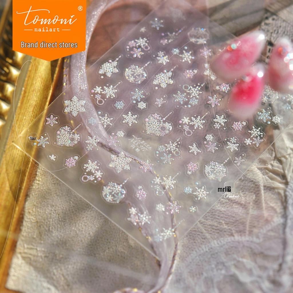 Tomoni & Moshu Winter Luxury Metal Nail Art Stickers: Snowflake & Heart Designs