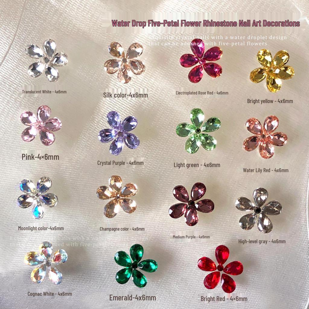 Champagne Pink Rhinestone Flower Nail Art Decorations: Sparkly, Colorful, Five-Petal Design with Pointed Back