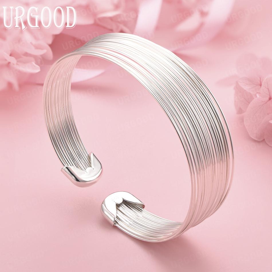 925 Sterling Silver Multi-line Bangle Fashion Jewelry
