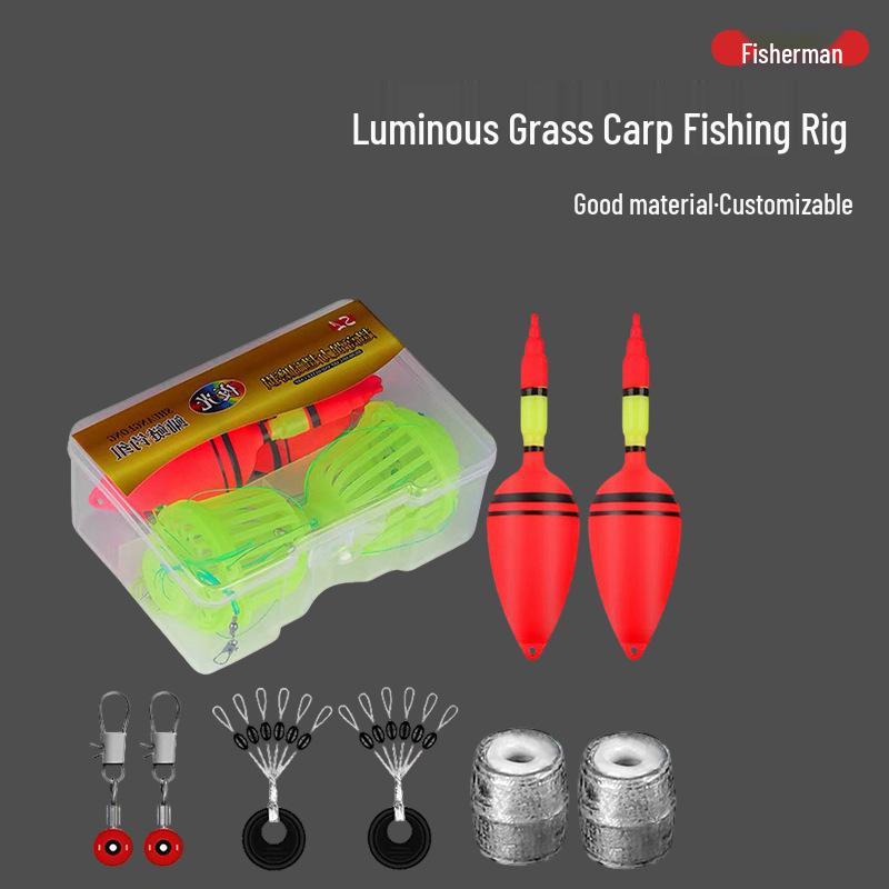 Luminous Bighead & Silver Carp Fishing Rig with Double Hook and Anti-Tangle Bait Cage