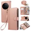 For Oppo Find X8 5G Case Multi Card Slots Zipper Leather Phone Cover with Shoulder Strap/Wrist Strap