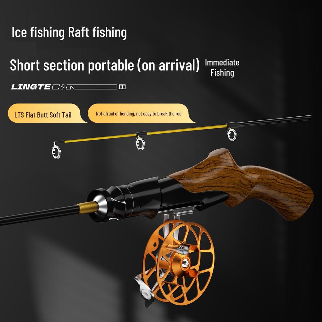 Telescopic Ice Fishing Rod Set with Soft Tip, Reel, and Accessories for Winter and Raft Fishing.