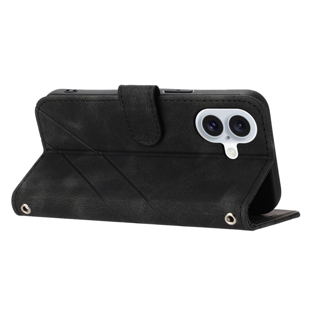 For iPhone 17 Case Imprinted Line Leather Phone Cover with Handy Strap