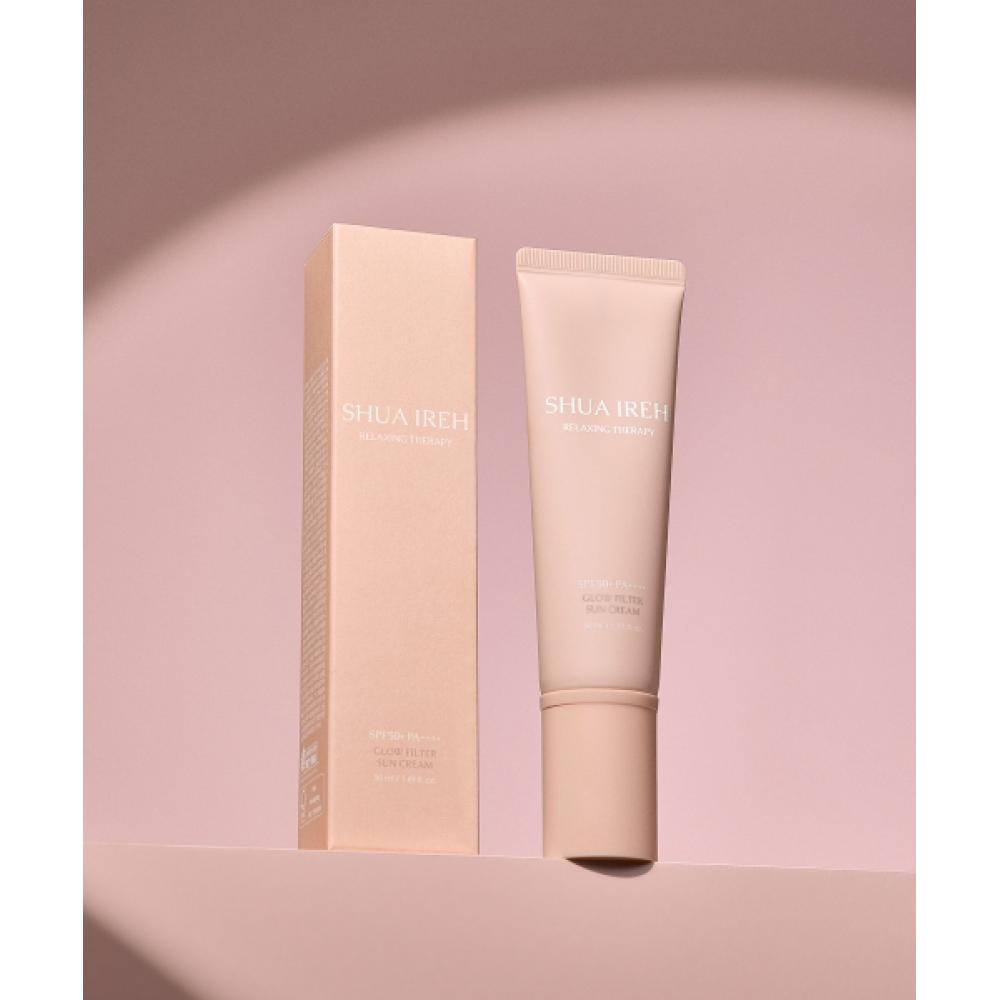 SHUAIREH Glow Filter Sunscreen (50ml) is a mineral sunscreen rated SPF50+/PA++++, offering protection against both UV and infrared rays while also assisting in skin aging prevention. This product has certified whitening and wrinkle improvement properties from the KFDA and is suitable for all skin types, having passed irritation testing. All ingredients are rated EWG green grade, making it safe for use by children and the entire family.
