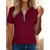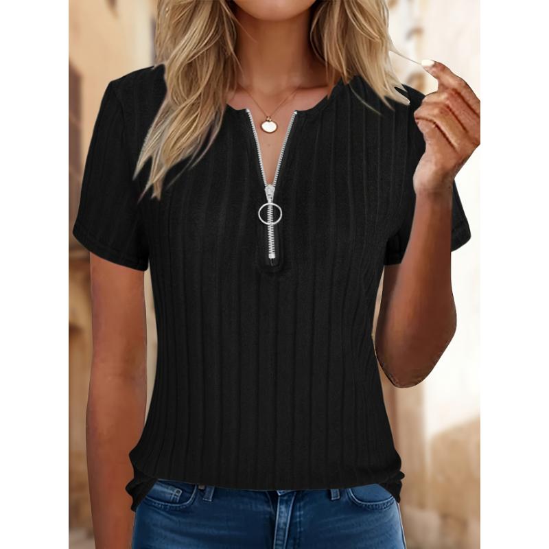 Ladies' Casual and Elegant Zipper Short Sleeved T-shirt Suitable for Casual Wear In Spring, Summer, and Autumn