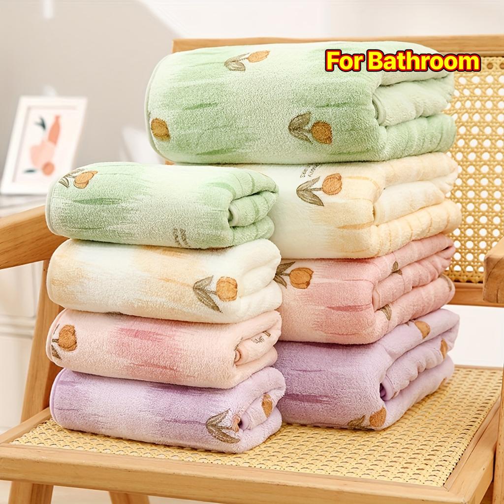 Floral Adult Bath Towel, Spring Ranunculus Bathroom Towel , Coral Absorbent Soft Full , Home Fingertip Towel