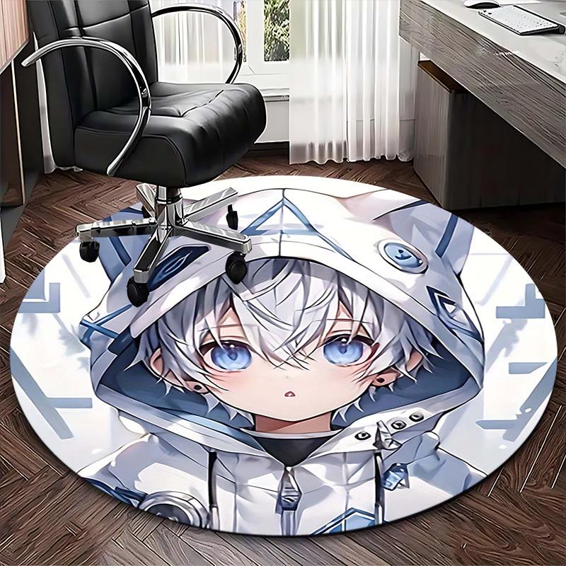 1pc Anime Design Round Carpet for Office Chair Mat, Non Slip Rug Home Decor, Living Room, Bedroom