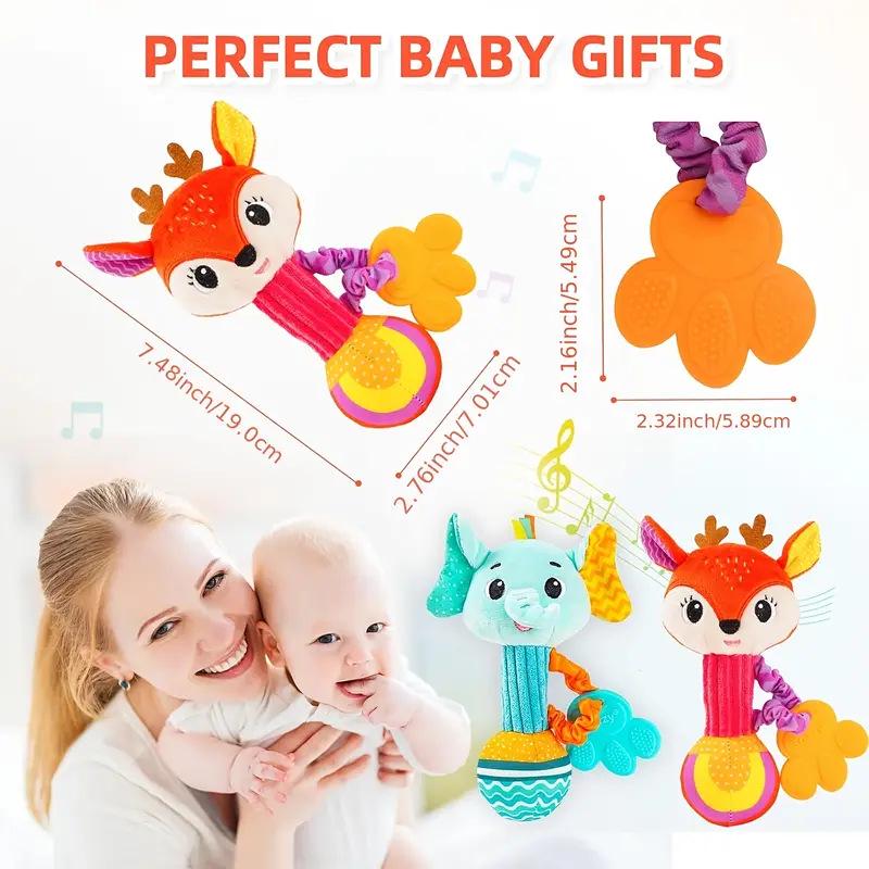 Plush Baby Teether and Rattle Toy with Hand Grip - Educational and Soothing Crib Mobile for 0-1 Year Olds
