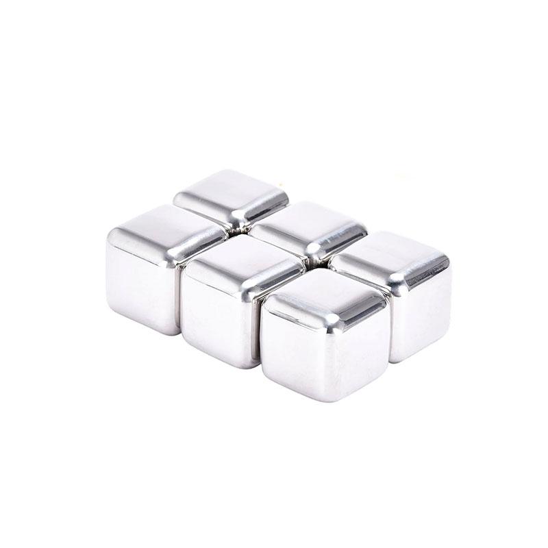 Reusable Ice Cubes Drinks Stainless Steel Whiskey Stones Cooling Metal Whiskey Rocks 6Pcs Chilling Stones for Wine Chilling Rock