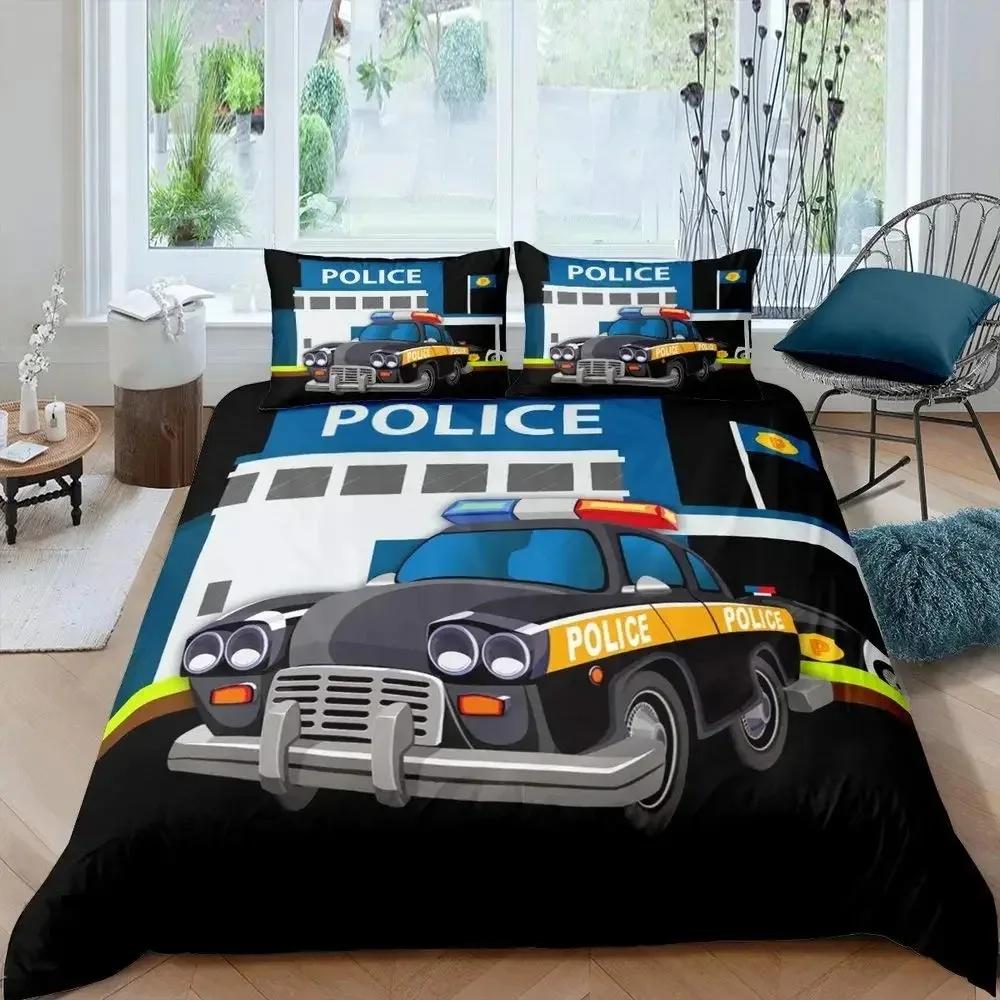 Cartoon Police Car Bedding Set Single Twin Full Queen King Size Polyester Duvet Cover Aldult Kids Comforter Quilt Cover Set