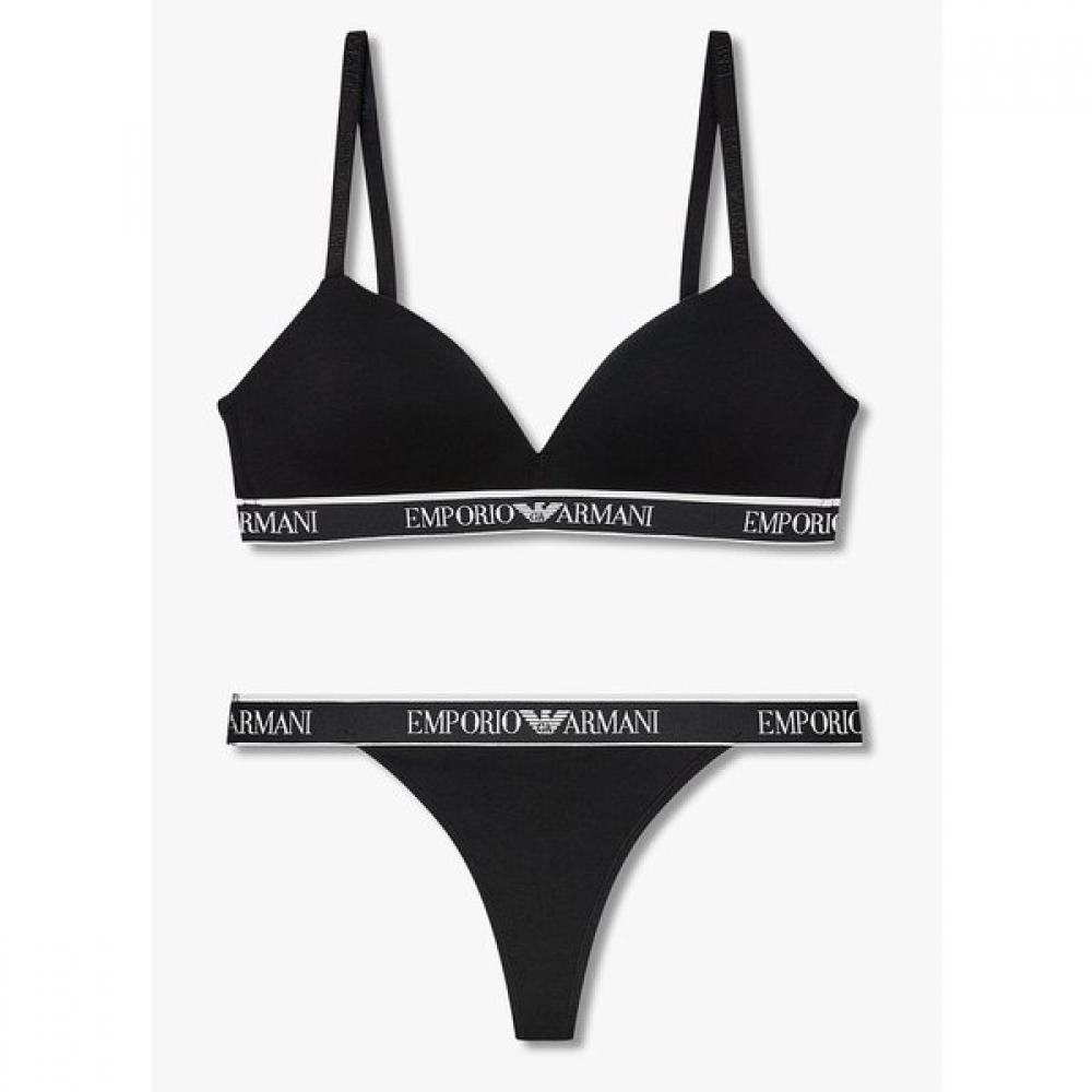 This set consists of a women's padded triangle bra and a bikini panty, both featuring a repeat logo design. The bra provides light volume with its padded cups, while the logo detail serves as an accent. The panty, made of cotton, is perfect for everyday wear.